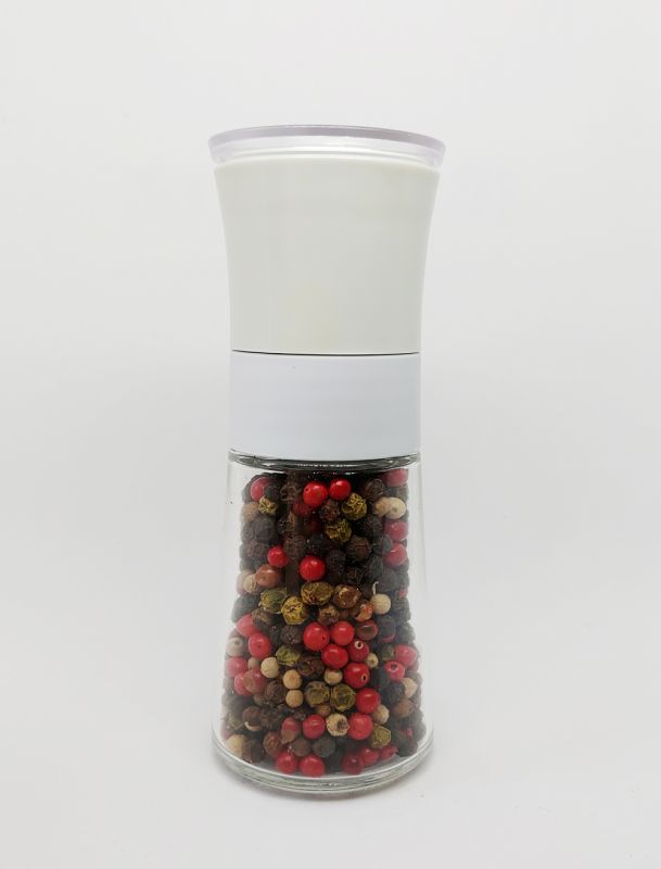 こちらの透明なミルに入れて使うと綺麗で楽しいです。辛味と芳香も素晴らしいので、ドレッシングに加えたり、ステーキ、パスタなど料理全般にぜひお試し下さい。