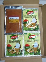 コリアンダー(モロッコ)、パプリカ、クミン、赤唐辛子、乾燥エビ、チキンコンソメ、帆立パウダー、ブラックペッパー、野菜パウダー(ニンジン、キャベツ、ホウレン草、トマト)、食塩、バイマックル、ガランガル、オニオン、ガーリック、レモングラス、パクチー、ナンプラー、(一部に小麦・大豆・鶏肉を含む)